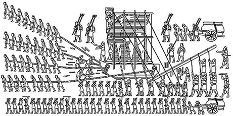 Archaeologists discovered a mural (Fig. 1) in a tomb during an archaeological excavation of the Nineveh site on the plains of Mesopotamia. The painting depicts a scene of carrying a huge stone statue. It can be seen that the huge stone statues seem to be placed on a "ship". There is a place in front of and behind the "ship" to fix the traction rope, and the tow rope is used to move the stone statue. It is worth noting that some logs are scattered under and around the “ship”. It is conceivable that these logs are actually used as sleeper rails to reduce frictional drag.